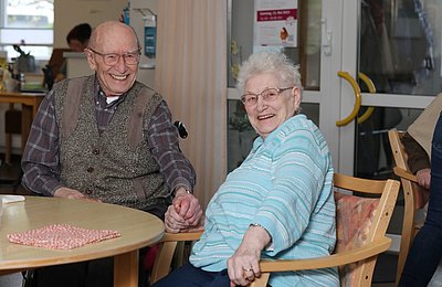 Nach der Mittagsruhe folgt dann für die Gäste das gemeinsame Kaffeetrinken. Auch hier sind angeregte Gespräche und der eine oder andere herzliche Lacher an den Tischen wahrnehmbar. Am Nachmittag ist dann noch Raum für individuelle Beschäftigung wie ausgelassene Spielerunden, ein Spaziergang oder ähnliches. Wer mag, kann sich in gemütlichen Räumen auch jederzeit zurückziehen und Energie tanken.