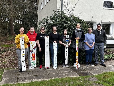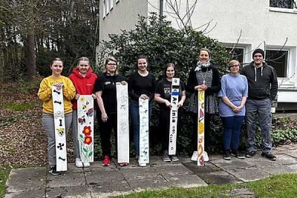Kürzlich gab es dazu wieder eine gute Möglichkeit. Im Rahmen eines kreativen Projektes haben unter anderem Auszubildende aus dem Bereich der Hauswirtschaft und dem Projekt MUT Zaunbretter nach eigenen Ideen gestaltet. MUT steht dabei für Motivation, Unterstützung und Training. Unter Förderung durch das Amt proArbeit des Kreises Minden-Lübbecke finden dabei langzeitarbeitslose Menschen mit unterschiedlichen Problemlagen wieder Motivation und Möglichkeiten, einen geeigneten Platz im Erwerbsleben für sich zu ergründen.