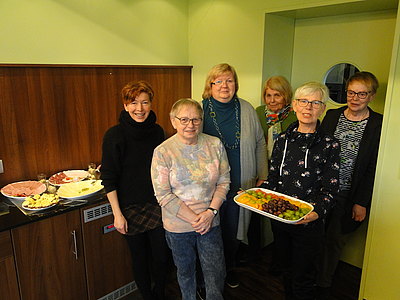 „Das Frühstück ist sehr beliebt“, verrät Katrin Kischkel, die gemeinsam mit Iris Eikmeier das Seniorenbüro leitet und beim Herrichten des Buffets von einem tollen Team ehrenamtlicher Helferinnen unterstützt wird. Auf die Frage, warum sie denn zum Erzähl-Frühstück gehen, verraten drei Damen: „Hier ist es einfach richtig nett. Wir schätzen das Angebot sehr, genießen den Austausch mit anderen und freuen uns auf die verschiedenen Themen und Vorträge.“ Gemeint sind damit die regelmäßigen Besuche heimischer Organisationen und Gruppen. So stellte sich die Polizei beispielsweise vor und verriet Tipps, wie sich – gerade ältere Menschen – vor Trickbetrügern schützen können. Aber auch „Die Tafel“ oder „Packt an“ berichteten in dieser Runde über ihre Arbeit. „Gerade wenn wir Besuch von Hilfsorganisationen bekommen, sind unsere Gäste sehr interessiert“, so Kischkel. Und weiter: „Die Hürde, im Bedarfsfall dort um Hilfe zu bitten, ist niedriger, wenn man die Menschen die dahinterstehen schon einmal gesehen hat.“