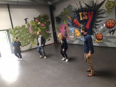 Coaches beim Speed-Dating treffen, mit Tanzlehrerin Anna Nazirow zu fetziger Musik in Schwung kommen, echte Grafittis mit Profi Dennis Herb gestalten und dazu noch kulinarisch voll auf die Kosten kommen; da bekommt man doch Lust auf „JobLab“. Das ist eine geförderte Maßnahme durch das Amt proArbeit Jobcenter / Kreis Minden-Lübbecke, welche von der Berufsbildung der Evangelischen Stiftung Ludwig-Steil-Hof zusammen mit dem Esta Bildungswerk und der Handwerks-Service GmbH durchgeführt wird. Standorte befinden sich in Espelkamp an der Rahdener Straße 5 und in Minden an der Goethestraße 31.