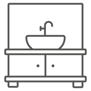 Jedes Apartment ist ausgestattet mit einem WC, einer barrierefreien Dusche, einem Waschbecken und einem Anschluss für die Waschmaschine.